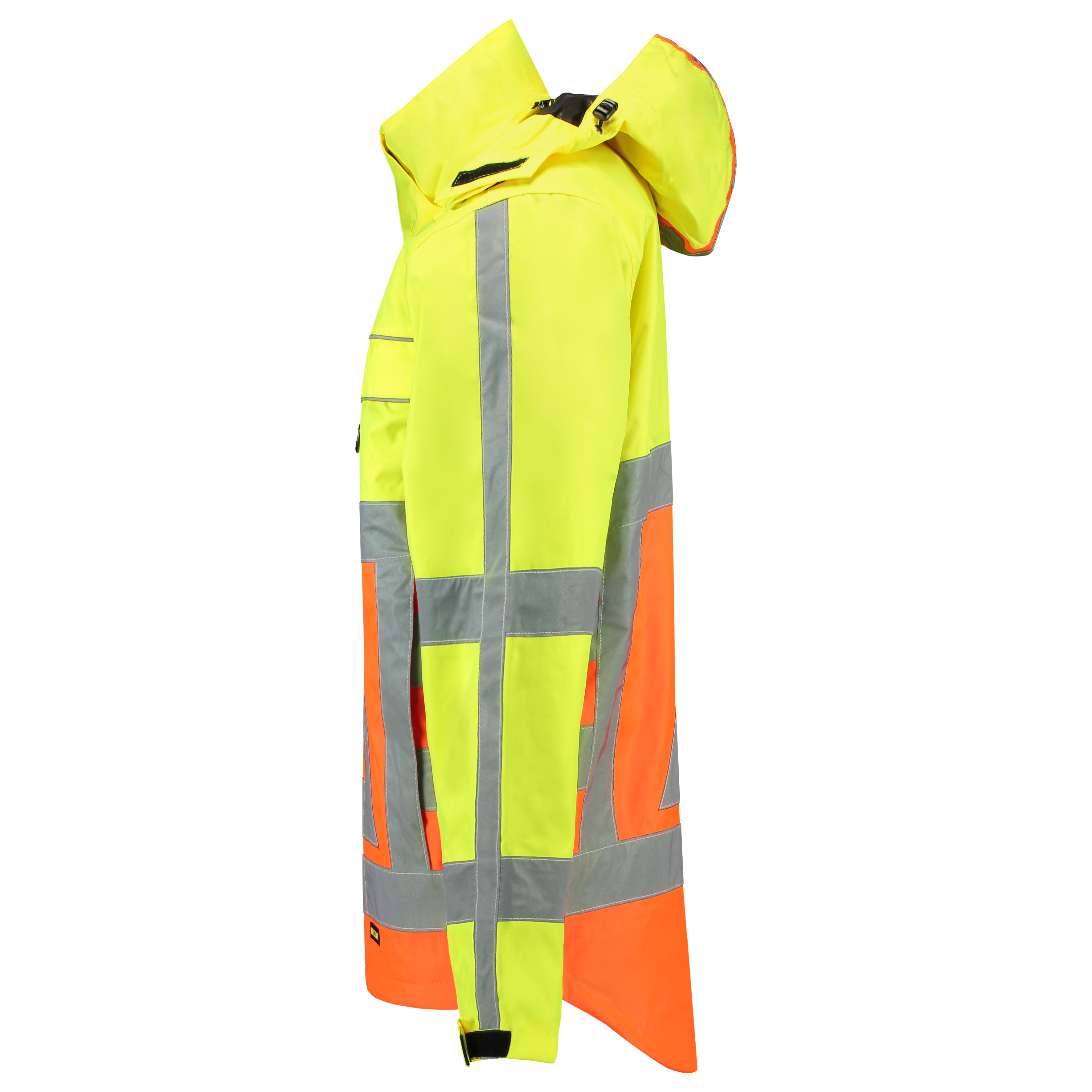 De Parka Verkeersregelaar in de Tricorp Safety collectie is gemaakt van een buitendoek in 100% Oxford polyester met PU coating en getapete naden. Deze Parka is wind-, waterdicht en ademend conform EN343 / Klasse 3:3. Met deze norm biedt deze Parka Verkeersregelaar u de meest ideale combinatie van ademende werking en wind- en waterdichtheid! Voor wat betreft de normering Hoge Zichtbaarheid is deze Parka Verkeersregelaar gecertificeerd conform EN ISO 20471:2013 / Klasse 2 voor de maten XS-M en Klasse 3 voor de overige maten. Daarnaast voldoet de Parka volledig aan de meest actuele Regels voor Uitrusting als vastgelegd in de Regeling Verkeersregelaars 2009. De Parka Verkeersregelaar heeft een uitneembaar Thermo binnenjack welke separaat draagbaar is maar niet als robuust werkjack dient te worden gebruikt. De Parka Verkeersregelaar is verder voorzien van een verstelbare en afritsbare capuchon, 4 buitenzakken en 2 binnenzakken waarvan één geschikt voor telefoon. De onderzijde van de Parka Verkeersregelaar is verstelbaar middels een elastisch koord met stoppers, heeft tricot windvangers in de mouwen en door middel van klittenband verstelbare manchetten. Daarnaast is de Parka Verkeersregelaar voorzien van epauletten, gestikte schouderlus voor portofoon, een borstlus voor fluitje en een te verbergen ID-badgehouder. De striping is volledig gestikt en daarbij is er op deze Parka Verkeersregelaar aan zowel voor- als achterzijde extra reflectie piping aangebracht.