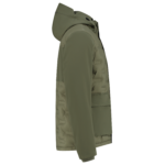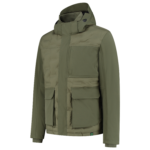 Het puffer jack heeft een comfortabele ribkraag in de hals. Ook de manchetten zijn voorzien van een ribmanchet. De capuchon heeft een uitsparing aan de zijkant voor extra zicht en is volledig afneembaar middels drukkers. Met de verdekte koordstopper kun je de capuchon verstellen. Aan de binnenkant van de werkjas zit een uitneembare rib windvanger met antislip elastiek. De onderkant van de werkjas is verstelbaar middels het koord aan de binnenzijde. Er zijn voldoende opbergmogelijkheden: twee binnenzakken, borstzak met rits en de zakken op het voorpand hebben zowel aan de boven- als aan de zijkant een ingang die ook afsluitbaar is. Vanwege de puffer look is er op het linker voorpaneel en het achterpand gebruik gemaakt van constrast softsell, zodat je de werkjas kunt bedrukken. Er is ook een printerrits aanwezig. Maak je outfit compleet met de overige items uit de Rewear collectie.